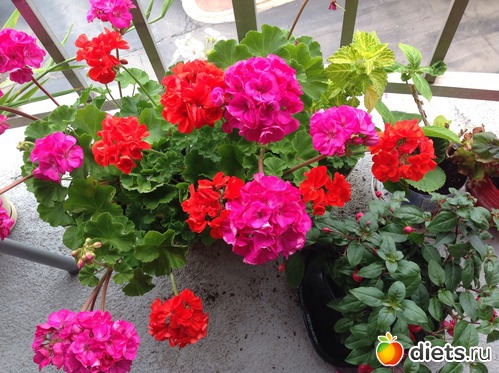 Вот как пеларгонии разрослись на балконе и радуют нас своим цветением.