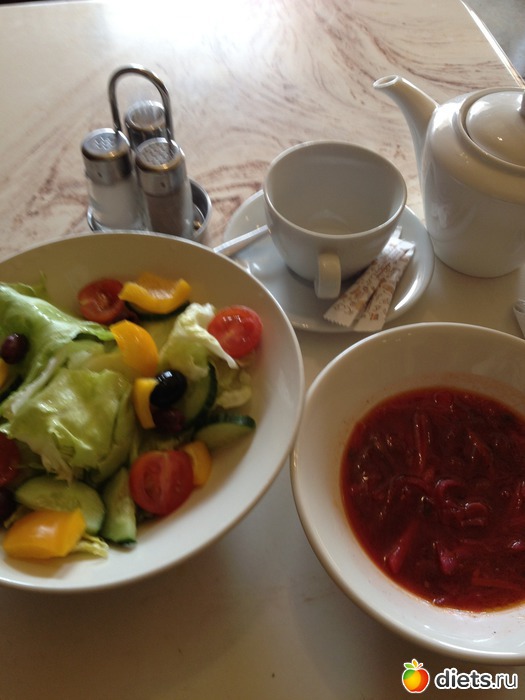Хороший легкий обед получился - борщ на грибах и овощной салат.