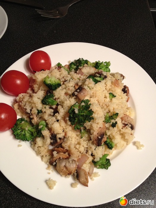 А на ужин сделала вкусный кус-кус с грибами и брокколи. Ням!