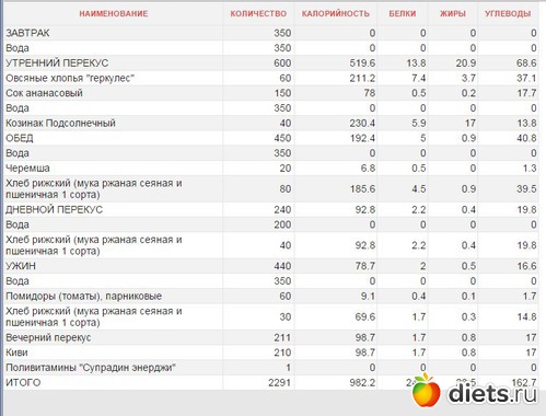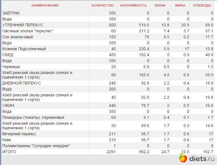 Калорийность продуктов
