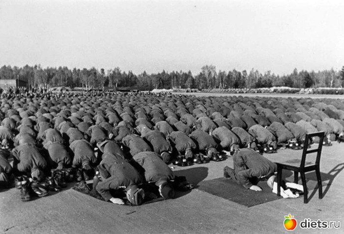 1943. Солдаты 13-й горной дивизии СС «Ханджар» (1-я хорватская) совершают намаз. Дивизия была набрана из добровольцев боснийцев-мусульман.