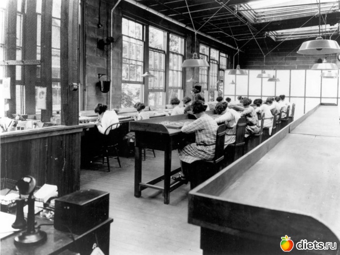 1922. Девушки рисуют на циферблатах светящиеся цифры радиоактивными красками. Многие из них потом умрут от рака.