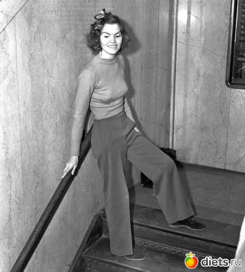 1938. Воспитательница детского сада, вызванная в суд в качестве свидетеля, получает пять дней тюрьмы за неуважение к суду — она пришла давать показания в брюках. Лос-Анджелес.