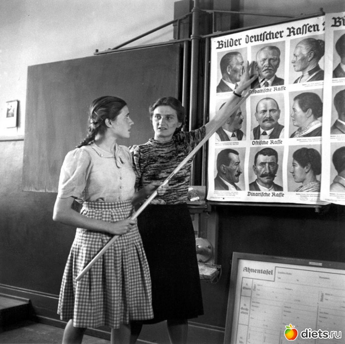 1940. Германия. Школьницы на занятии по расовой чистоте.