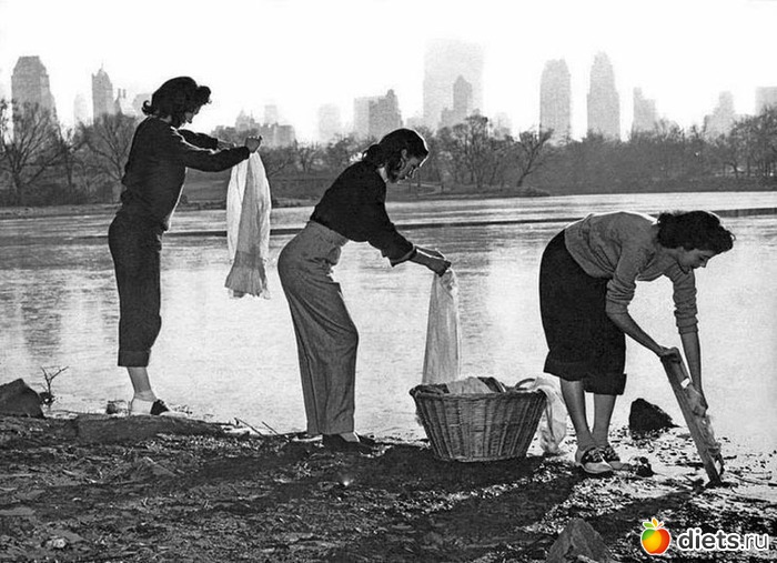 1949. Женщины стирают белье в Центральном парке во время перебоев с водой. Нью-Йорк.