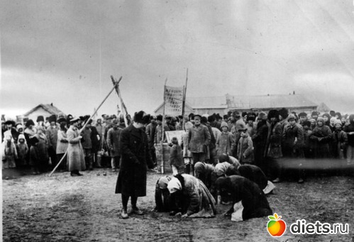 1922. Женщины благодарят представителей Американской администрации помощи. Деревня Васильевка Самарской губернии.