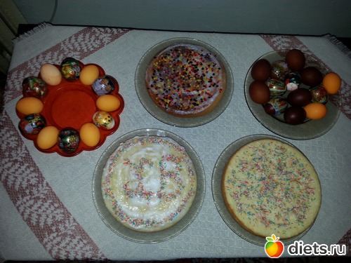 Красили с дочей яички, пекли пирог и запеканку (мои домашние ее просто обожают