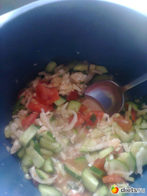 У салат, рыба.