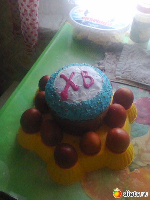 сегодня белки. Тоже вроде ничего себе, но было поднамешано белочков, яйцо-то надо было скушать, разн\говеться! я так и планировала, в принципе! Все же праздник.
