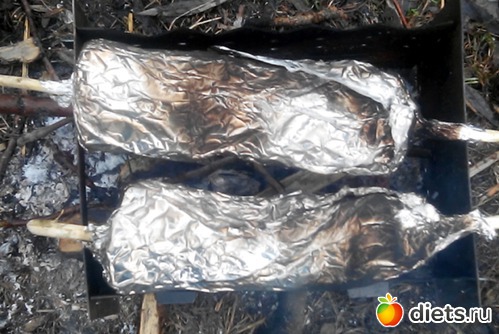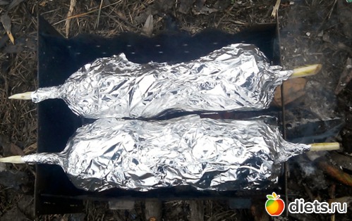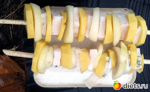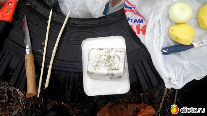 Но это совершенно не помешало собрать из картошки, лука и сала нечто вроде шашлыков.