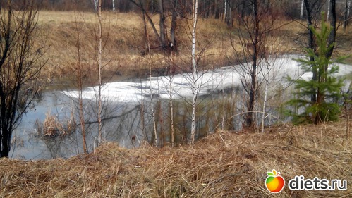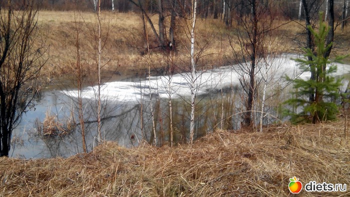 Озерцо вблизи поляны до сих пор до конца не растаяло.