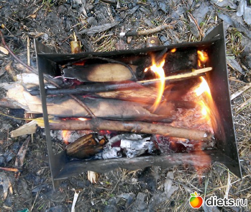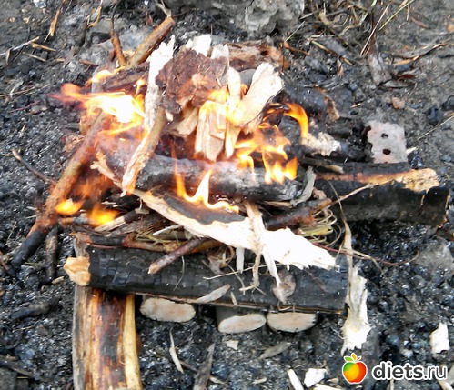 Самое сложное было развести костер, но я справился. Правда, израсходовал большое количество растопки. Цельный бутылек жидкости для розжига истратил.