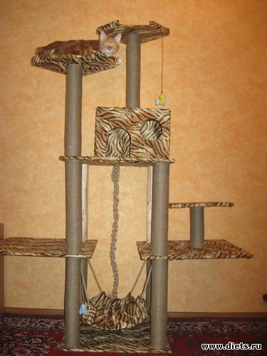 И последнее, можно вешать игрушки, гамак и канат. Дом получился очень большим 1,5м шириной и 1,9м высотой.