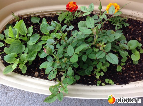 В начале июня я пересадила розочку в контейнер на балконе. Она немного разрослась. Появилось пять бутонов. И сейчас жду цветения. По- прежнему два раза в день поливаю и опрыскиваю.