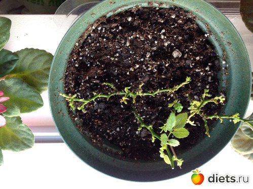 Пришлось опять пересадить розочку в горшок и внести в комнату.