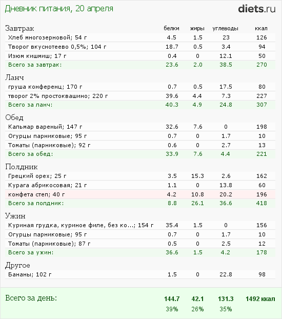 Diets.ru меню за 20 апреля