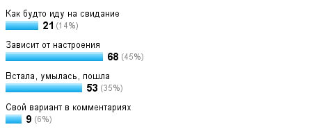 И я задумалась о том, как выгляжу каждый день я... До работы добираюсь ненакрашенная и непричесанная - от ветра глаза слезятся, макияж стекает. А прическу шапка убивает напрочь, поэтому на работе лежат "дежурные" утюжки. Марафет навожу на работе, благо прихожу на пол часа раньше остальных коллег.