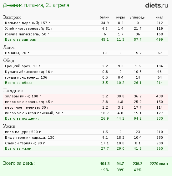 Diets.ru Меню за 21 апреля (стыд и позор)