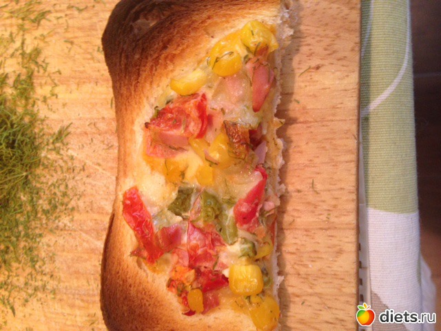 Овощи кубиком, сыр натираем, добавляем специи по вкусу, выкладываем на хлеб и запекаем около 10 минут при 180 гр.