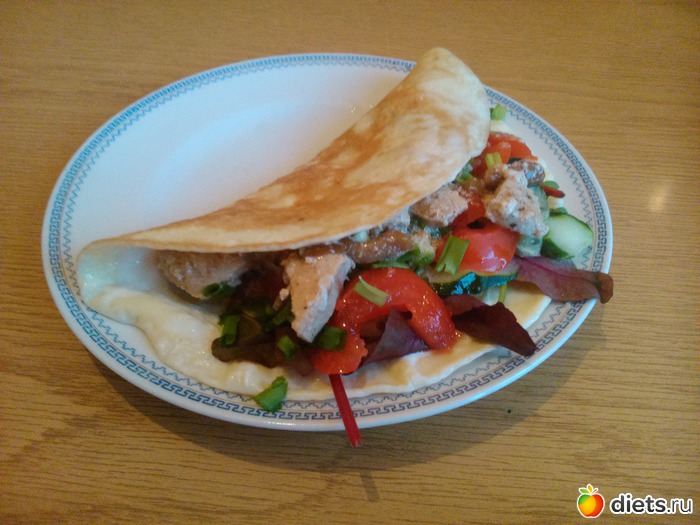 Ужин - яичный блин с овощами и немного обеденной тушеной грудки...