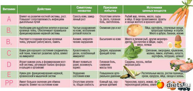 витамины Краткая таблица содержания витаминов в продуктах питания