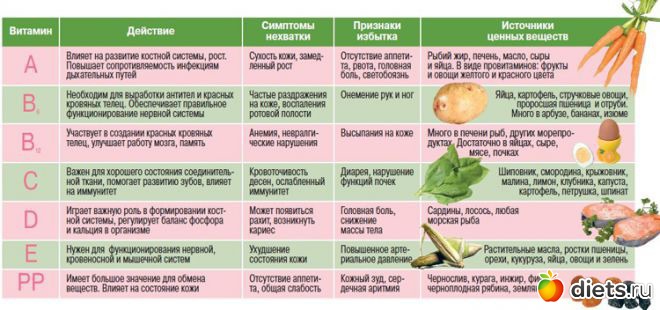 Краткая таблица содержания витаминов в продуктах питания Читать полностью