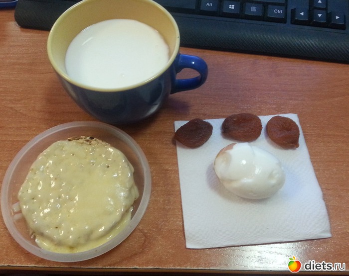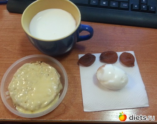 Ланч:Гречневая каша с молоком, кофе с молоком полстакана и 1/2 чайной ложки меда