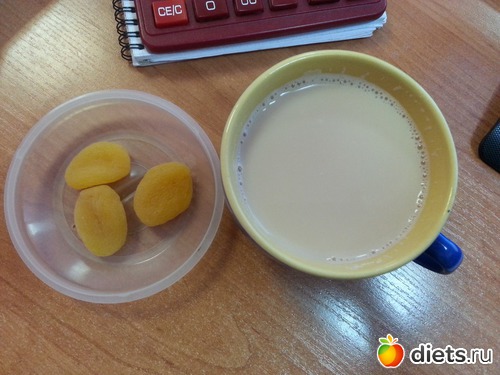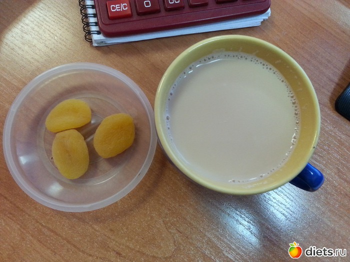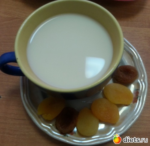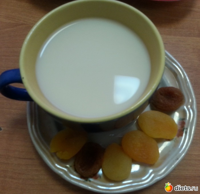 Обед:Все тот же молокочай и курага, чтоб совсем скучно не было