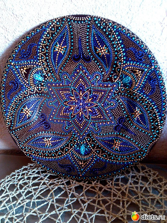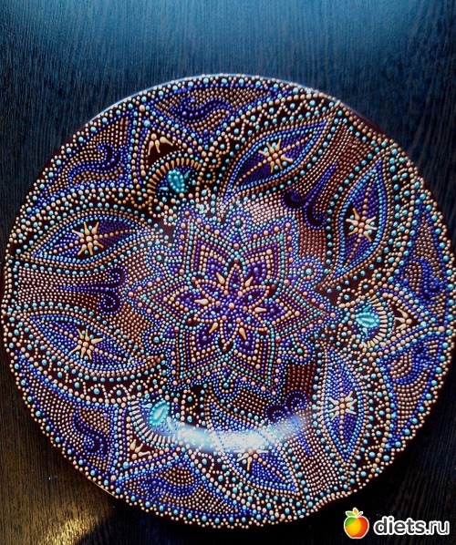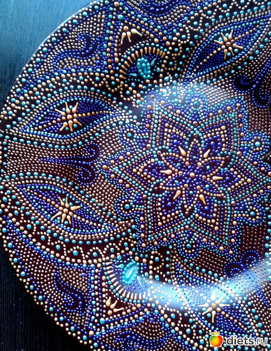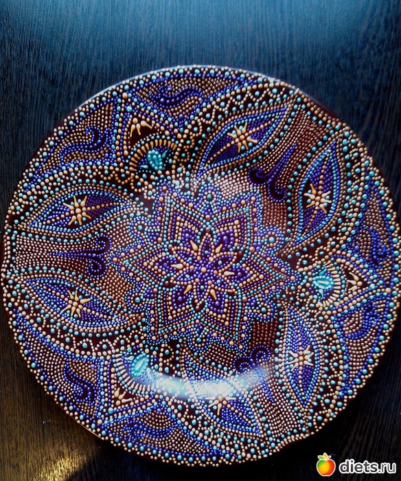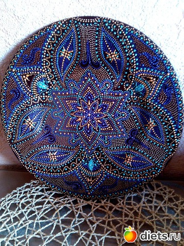 ООО, точки! Они так спасают от хандры! Хоть и весна на дворе, но какая-то малосолнечная, неубедительная. Ещё и известие пришло от сестры из Читы - полностью выгорел коттеджный посёлок, где она живёт с семьёй, сами едва спаслись... Неделю не могла отойти от этой новости, а потом села - и давай точковать! И сразу радостнее стало, хоть и тарелочку назвала "Сумерки"