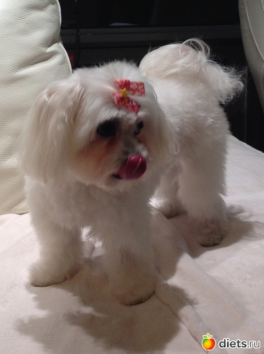 Глазки мы ей моем каждый день просто водой, но это слабо помогает. Только когда ей выстрегут под глазами шерсть, какое- то время она выглядит нормально. А потом опять... Говорят, это такая особенность мальтийских болонок.