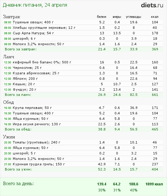 Калорийность продуктов