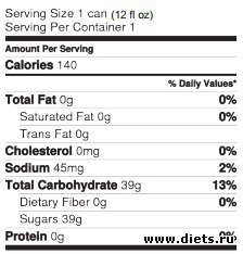 то же с колой зеро- 0,6 калорий на стакан, 0 сахара,0 жиров. ну, кого напрягает и хоцца - пейте зеро, хотя и в обычной криминала не нахожу.если не бочками, конечно, употреблять