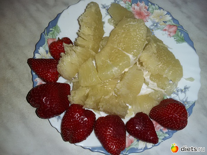 клубника и памелло(черт, я когда-нибудь узнаю как правильно этот фрукт называется?