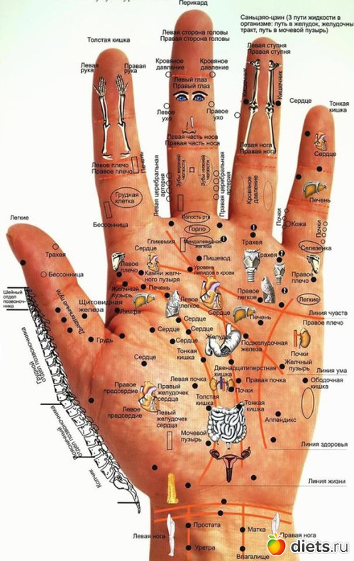 Согласно китайской медицине, точка в самом центре ладони считается энергетическим центром всего организма. Если, резко нажимая на нее большим пальцем другой руки, ощущается пронзительная боль — это означает наличие серьезных проблем со здоровьем и указывает на необходимость всерьез заняться своим самочувствием.