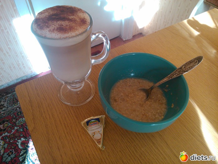 Завтрак - каша, латте, сыр..