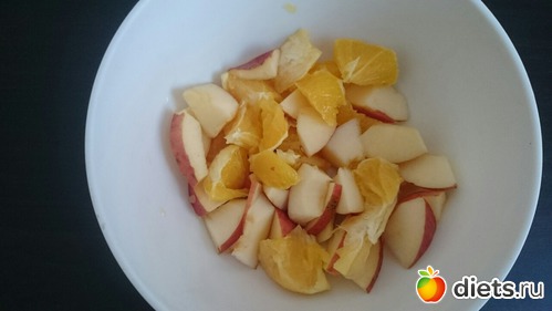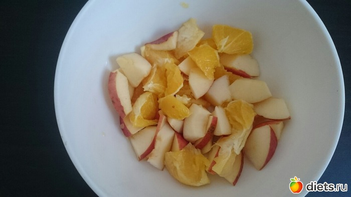 В 10 часов салатик из яблока и апельсина 150 грамм..не знаю называют салатам или нет просто порезанное яблоко и апельсин без всего..