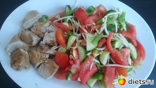 Сегодня у меня мясной день.. Отварная свининка и салатик..