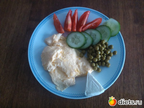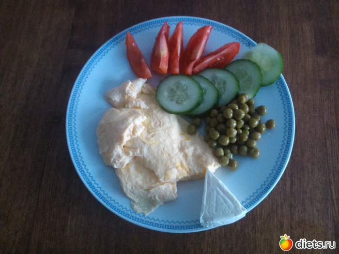 Ужин - омлет из 1 яйца, зеленый горошек, помидорчик, огурчик...