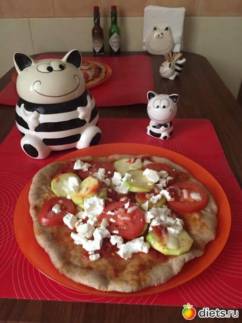 Вторая уже мне предназначалась ( овощная - помидорка и кабачок) и посыпана фетой