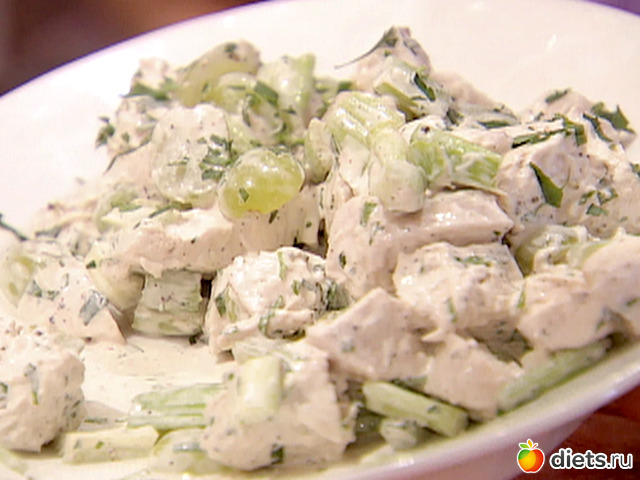 1 Куриную грудку отварите в небольшом количестве воды до готовности. Остудите и нарежьте кубиками.