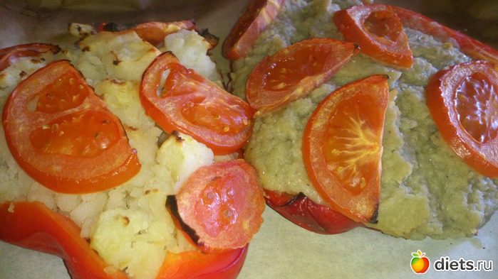 Перед запеканием чуть отварила перчики(2 минутки), они чуть не развалились. В след.раз буду без отваривания, им достаточно и запекания.