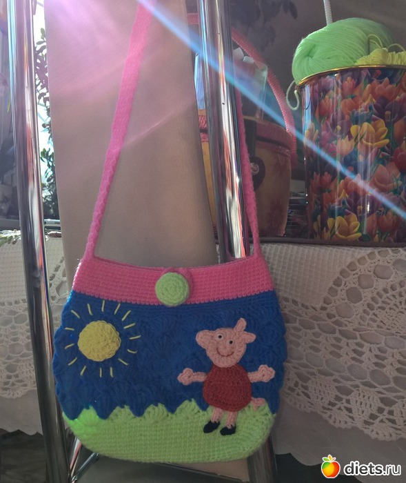 Даже моя дочка, которой 7 лет и этот мультик давно не смотрит, сказала, что и ей нужна такая сумочка. Так что придется вторую вязать.