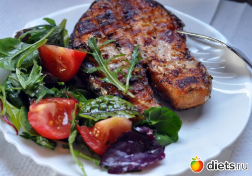Ужин: я осилила только половину стейка, жирно. Оставила на завтра, и после подсчета калорий поняла, что не зря.