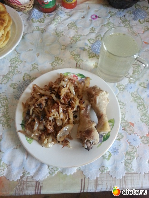 Обед - 2 куриные ножки + тушеная капуста + куриный бульон