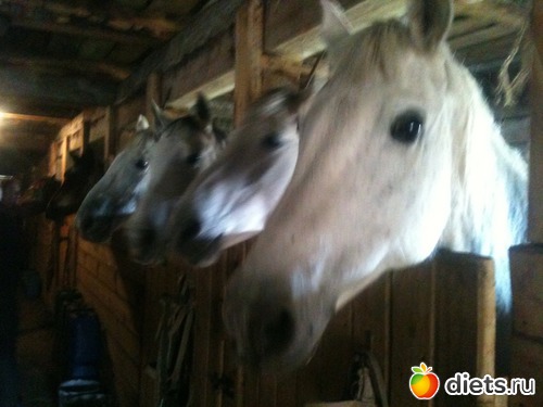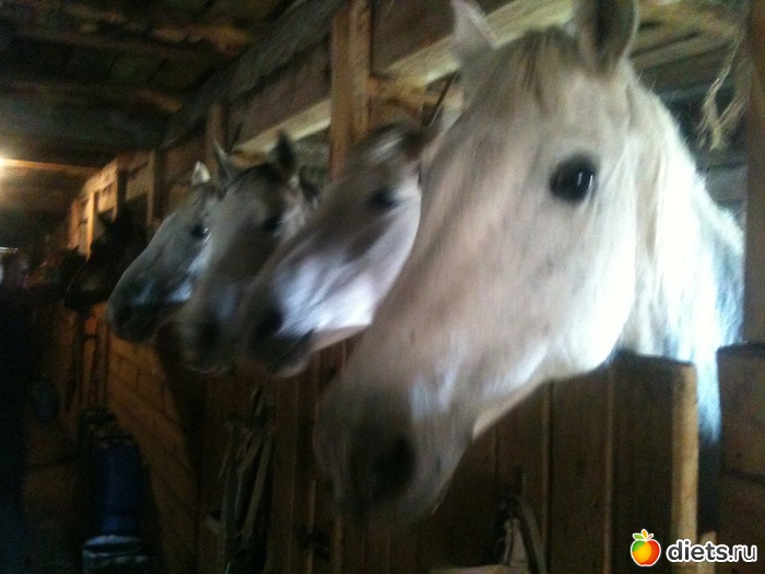 "Клуб серых" - 4 светло-серых кобылы в одном деннике. Приехали уже не заимку.
