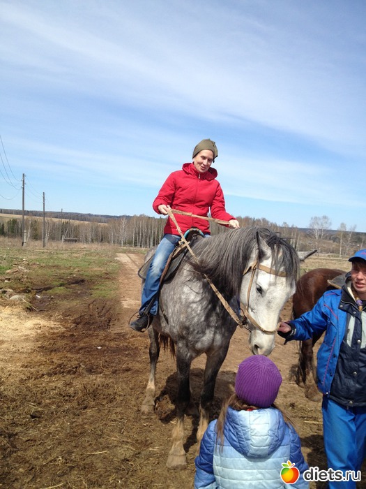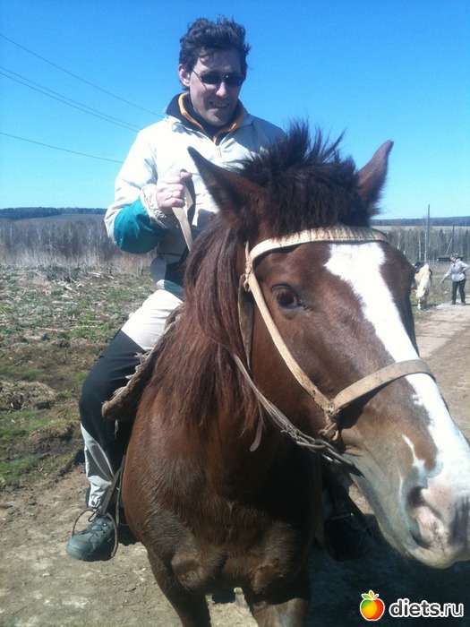 Андрей (мой муж) на Заринке. Он был первый раз в седле и ему понравилось!!! Даже согласен повторить ))) Урряяя!