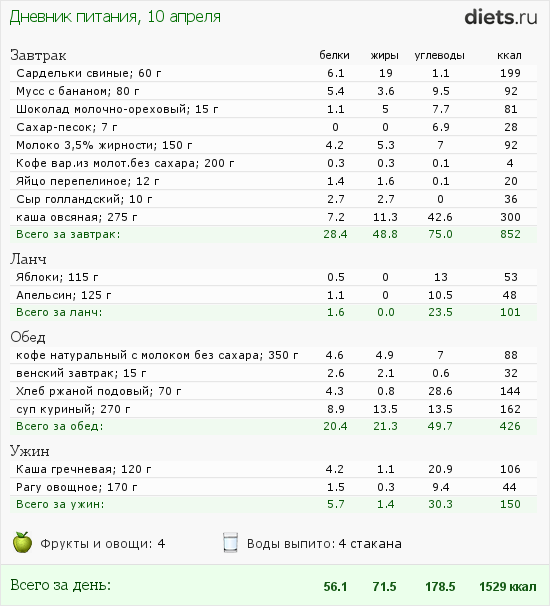 Посмотри, ем много, кажется, но отвесы каждый день от 100 до 400г. Но: я кормящая мамашка