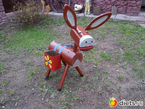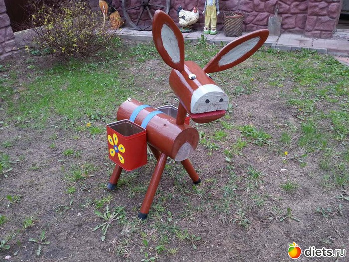 В прошлом году мы смастерили вот такого ослика из бревен: