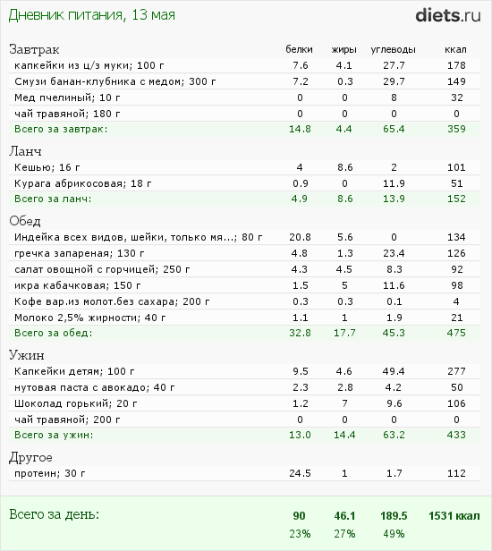 Да, и калорийность я подняла чуток, после подсчетов недельных. Сейчас проверю на 1500 как будет дело идти.