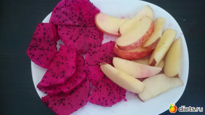 Первый завтрак коктейль : кефир, изолят протеина, отруби, смесь специй гарам масала и для разнообразия добавила немного питахайи, цвет стал красивый, ну и вкус другой..